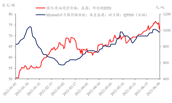 具體來(lái)看,本月原油價(jià)格大幅上漲的主要驅(qū)動(dòng)力在于國(guó)內(nèi)外疫苗接種情況良好,市場(chǎng)信心有所提振、夏季出行高峰利好釋放,居民出行數(shù)據(jù)迅速上升以及海外各主要經(jīng)濟(jì)體制造業(yè)迅速恢復(fù),多方利好支撐下,原油價(jià)格迅速攀升;著眼動(dòng)力煤價(jià)格,受夏季高溫天氣以及國(guó)內(nèi)經(jīng)濟(jì)形勢(shì)向好等因素影響,電廠日耗持續(xù)高位,動(dòng)力煤消費(fèi)需求明顯增加;另一方面,由于7月重大節(jié)日的到來(lái),6月國(guó)內(nèi)環(huán)保限產(chǎn)持續(xù)加嚴(yán),動(dòng)力煤供應(yīng)量偏少,供不應(yīng)求的背景下,動(dòng)力煤價(jià)格迅速上漲。